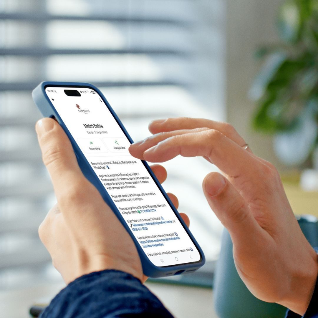 Nesta quinta-feira (4), o Metrô Bahia inaugura um canal no WhatsApp para aprimorar a comunicação institucional com os clientes. Trata-se de um meio adicional, de caráter exclusivamente informativo, voltado a garantir maior agilidade, praticidade e alcance na divulgação de conteúdos institucionais. Os clientes que adotarem a ferramenta vão encontrar também informações sobre o funcionamento do sistema, operações especiais do modal e vagas de emprego.