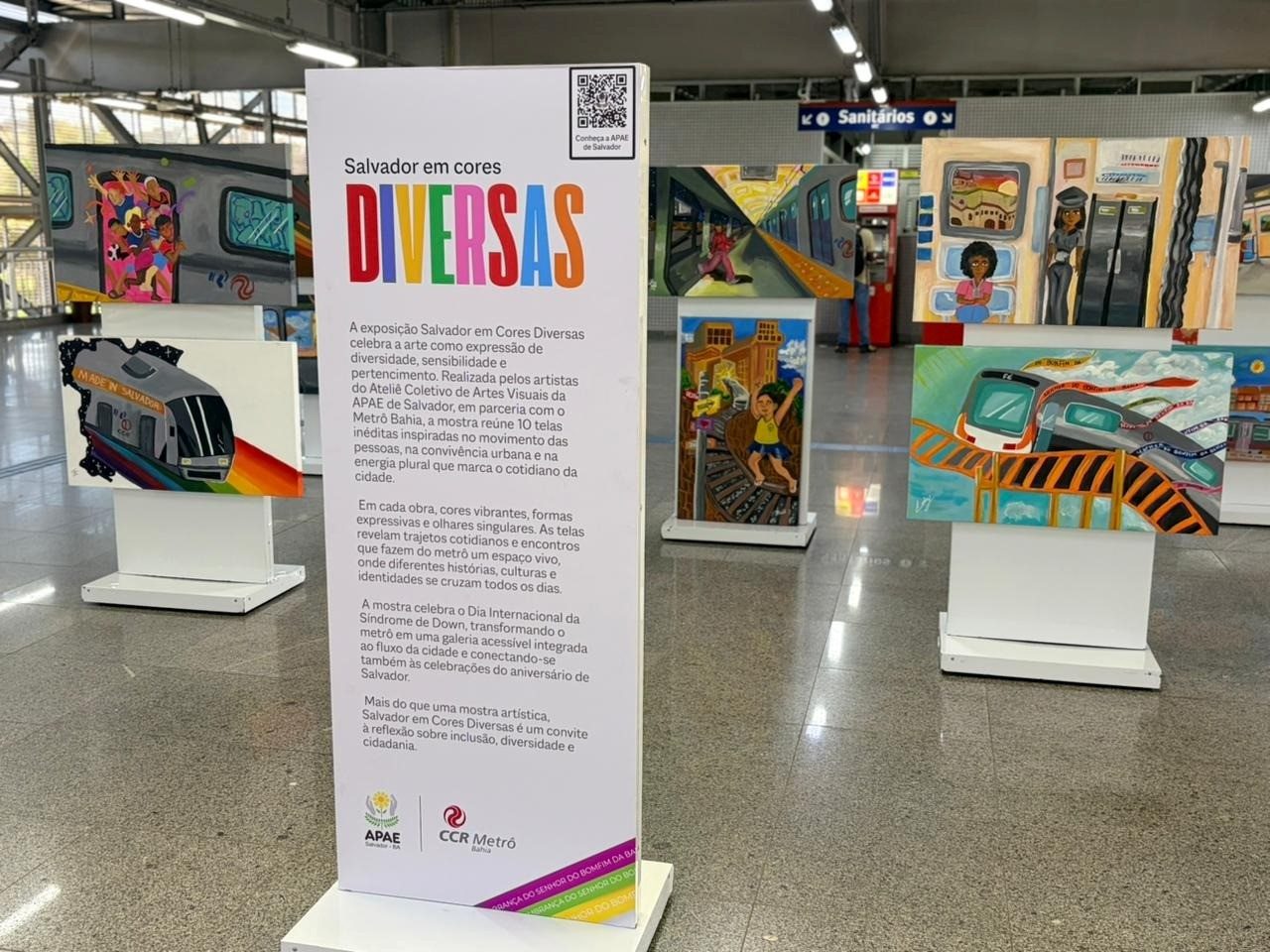 A iniciativa integra a programação cultural do Metrô Bahia, uma empresa da plataforma de Trilhos da Motiva, em comemoração ao Dia Internacional da Síndrome de Down e transforma o espaço da estação em uma galeria acessível para clientes e visitantes. As obras apresentam diferentes perspectivas sobre os encontros e trajetos que marcam o dia a dia no sistema metroviário, com uso de cores vibrantes e formas expressivas.