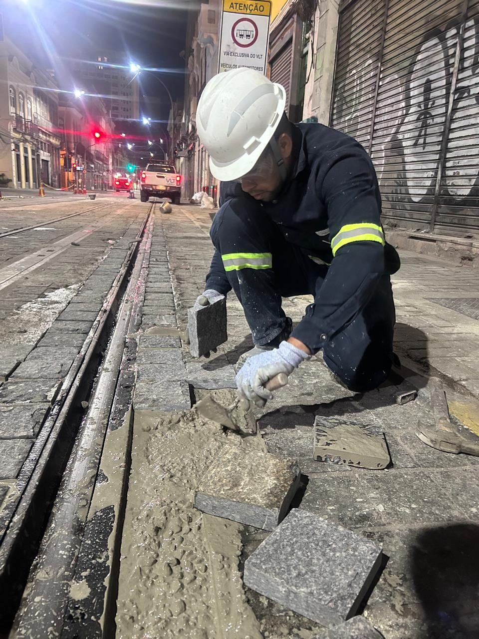 Nas próximas 2 semanas, o VLT Carioca dará continuidade à manutenção da superestrutura das vias por onde os trens de linha 2 e 4 circulam, na Rua da Constituição, no Centro do Rio. A atuação compreende um trecho de aproximadamente 50 metros, entre as ruas Gomes Freire e Regente Feijó. Iniciados no dia 11 de agosto, os trabalhos são realizados em fases, durante a madrugada, e visam corrigir desgastes pontuais da via. Cerca de 10 colaboradores atuam no local desde o início. A última etapa, prevista para ocorrer ao longo da segunda semana, compreenderá a fase final de acabamento do pavimento.